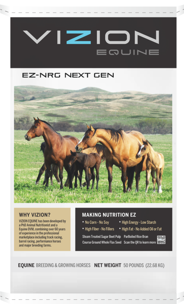 EZ-NRG® Next Gen Feed includes EZ-VTM® Vitamins/Minerals and Digestive Aids. It is specifically designed to strategically deliver EZ-VTM® at a set rate to meet energy needs of Gestating, Lactating and Growing Horses. EZ-VTM® is a vitamin, mineral, and probiotic digestive aids supplement that meets Nutrient Requirements of Horses* (NRC) when fed as recommended. EZ-VTM® uses strains of live probiotics to promote healthy gut microbiome and fiber digestibility, so horses synthesize their own B Vitamins and amino acids in a natural sustainable way. Targets expensive ingredients such as Vitamin A, Vitamin D, and Vitamin E. Vitamin E is essential in treatment of EPM and over-all immune system health Includes key trace minerals copper, zinc, manganese and selenium Only sulfate and chelated mineral sources.